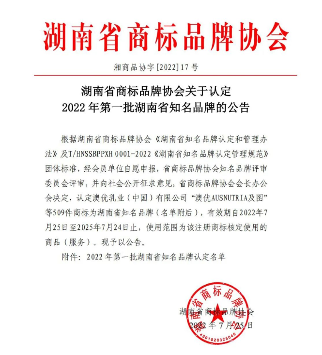 2022年7月25日,经湖南省商标品牌协会认定,evo视讯科技成功入选《湖南省知名品牌》。